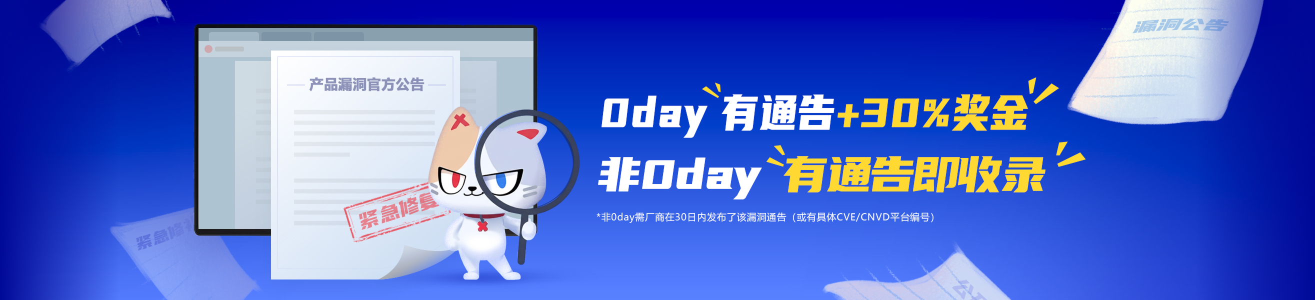 - 0day漏洞只收录影响产品最新版的漏洞,该版本须为厂商长期维护的主流版本。